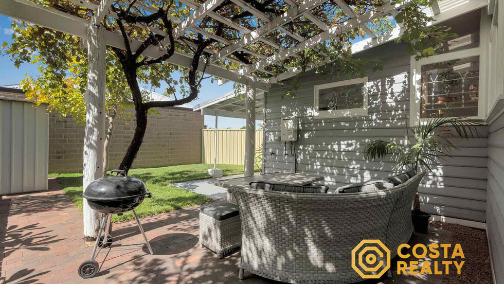 As you step outside to the back of the house, there is a beautifully landscaped and easy to maintain outdoor area. The alfresco is naturally protected by an established grape vine, perfect for outdoor living.